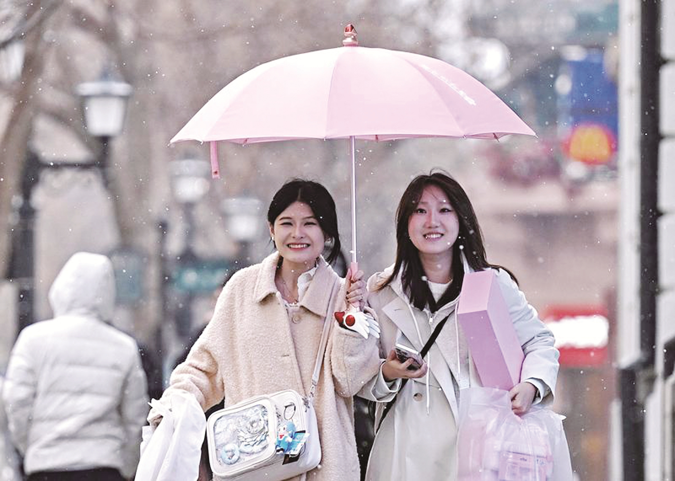 3月26日,哈尔滨市市民在雪中散步。 新华社发(杨威 摄)